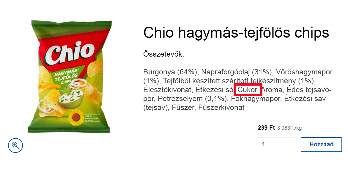 - A feldolgozott ételek szinte egytől egyig tartalmaznak cukrot. Még a chips, a majonéz, a kenyér, az energiarúd és a saláta öntetek is! Ami azt jelenti, hogy mindenhonnan cukrot viszünk be a szervezetünkbe. Ráadásul a rossz fajtából, és még nem is mozgunk eleget! Ha új még neked ez az információ, akkor menj be egy boltba, és nézd meg a leírását a termékeknek. Vigyázat! Ami azt írja, hogy rizsszirupot, fruktózt, izóglükózt, stb. tartalmaz az átverés. 2 ok, amiért a legtöbb feldolgozott élelmiszerben van cukor: függőséget okoz, így több kell belőle nekünk, másrészt pedig a zsírt helyettesítik vele.