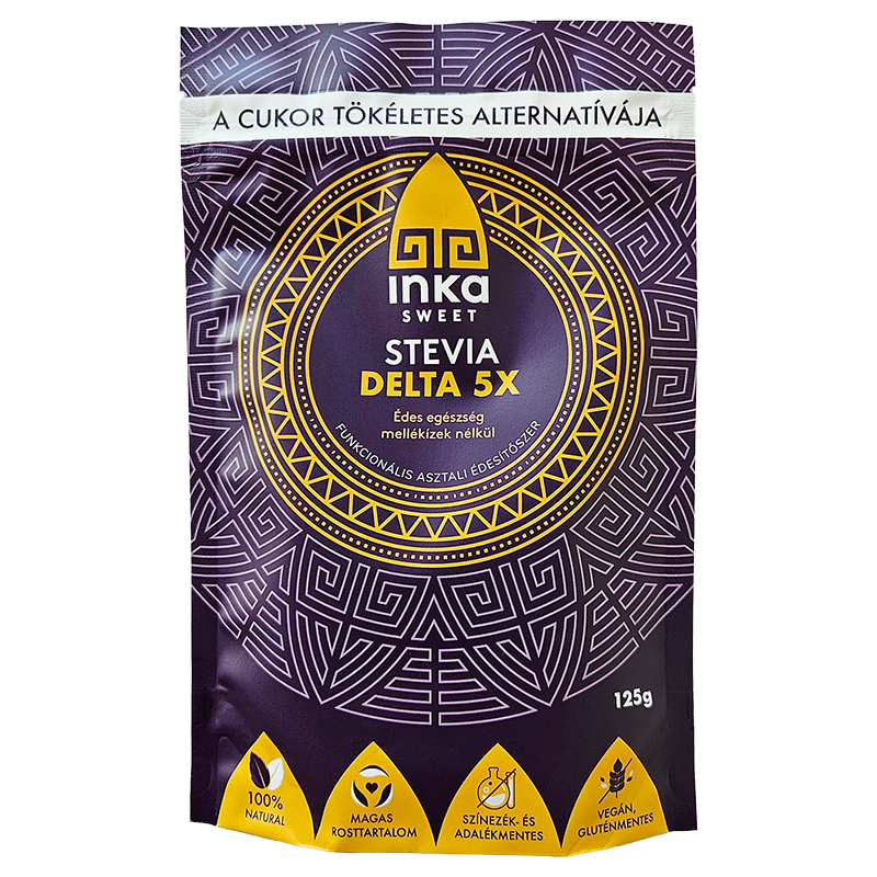 Az Inka Sweet Stevia Delta5x, 5-ször édesebb a cukornál. Ugyanolyan édesítő hatás eléréséhez ötödannyi kell belőle, mint cukorból. Ráadásul még karamellizálható is!
